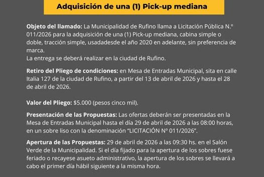 La Municipalidad de Rufino anunció una nueva jornada destinada al cuidado de la salud animal, que se llevará a cabo el próximo 8 de mayo en...