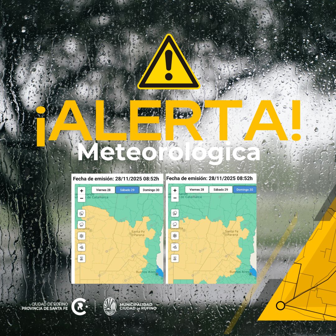 La Municipalidad de Rufino informa que rige un alerta amarilla por tormentas fuertes para el sur de la provincia.
