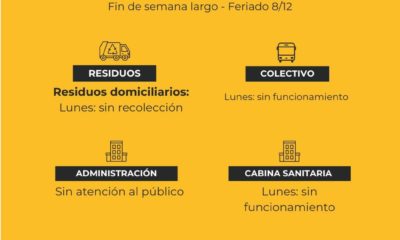 La Municipalidad dió conocer como serán los servicios para el fin de semana largo.