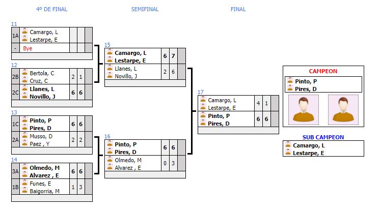 Por su parte, en Damas 8va, el título fue para las primas Vargas, Lucía y Vargas, Luz, representantes de Villa Saboya. El subcampeonato quedó para la pareja integrada por Cavallo, Griselda y Giménez, Juliana.