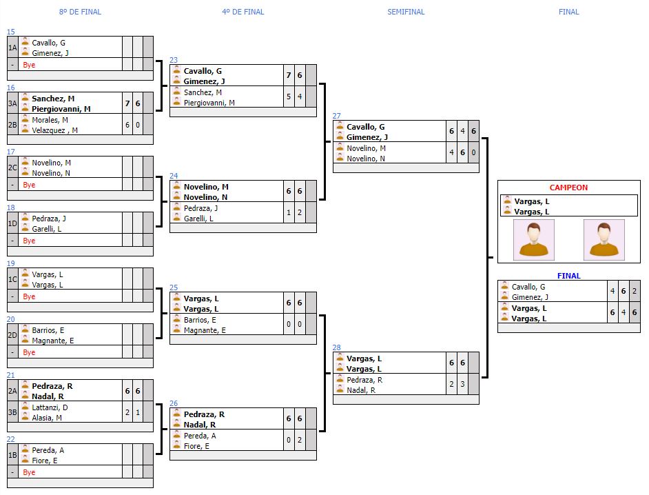 En Caballeros 8va, categoría que contó con una importante convocatoria de 26 parejas, los campeones fueron Vargas, Oscar Ramón y Rojos, Rodrigo de la localidad de Jovita, quienes se quedaron con el torneo tras vencer en la final a Castaño, Guido y De Armas Ezequiel.