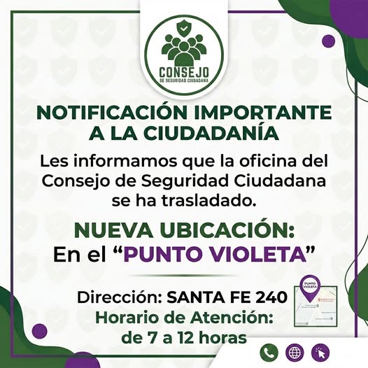 El Consejo de Seguridad Ciudadana comunicó a la comunidad que su oficina ha sido trasladada a una nueva ubicación, con el objetivo de mejorar la atención a los vecinos.