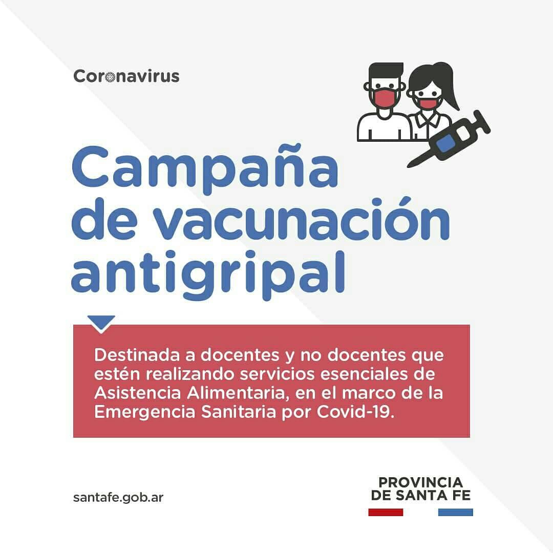 El gobierno provincial lanzó la campaña de vacunación antigripal, destinada a docentes y no docentes que estén realizando servicios esenciales de Asistencia Alimentaria, en el marco de la Emergencia Sanitaria por Covid-19⁣⁣.
