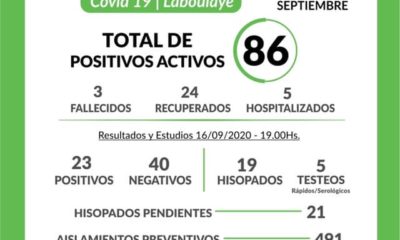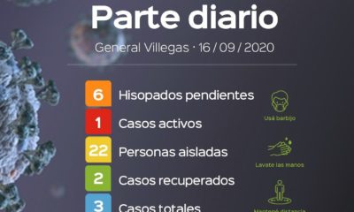 Según el Parte Oficial del Municipio cordobés de ayer 15 de septiembre se reportaron 10 HISOPADOS POSITIVOS y 21 NEGATIVOS.