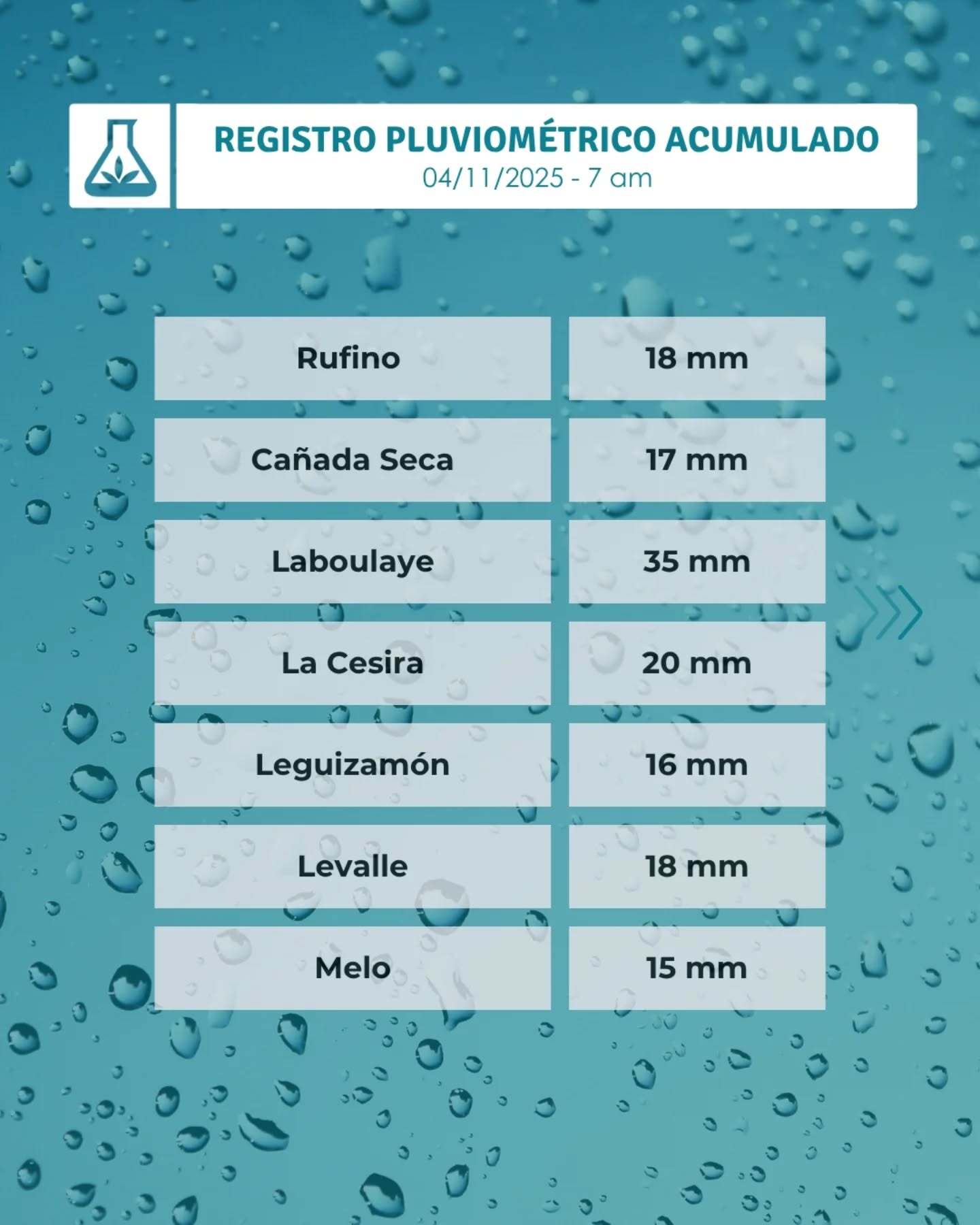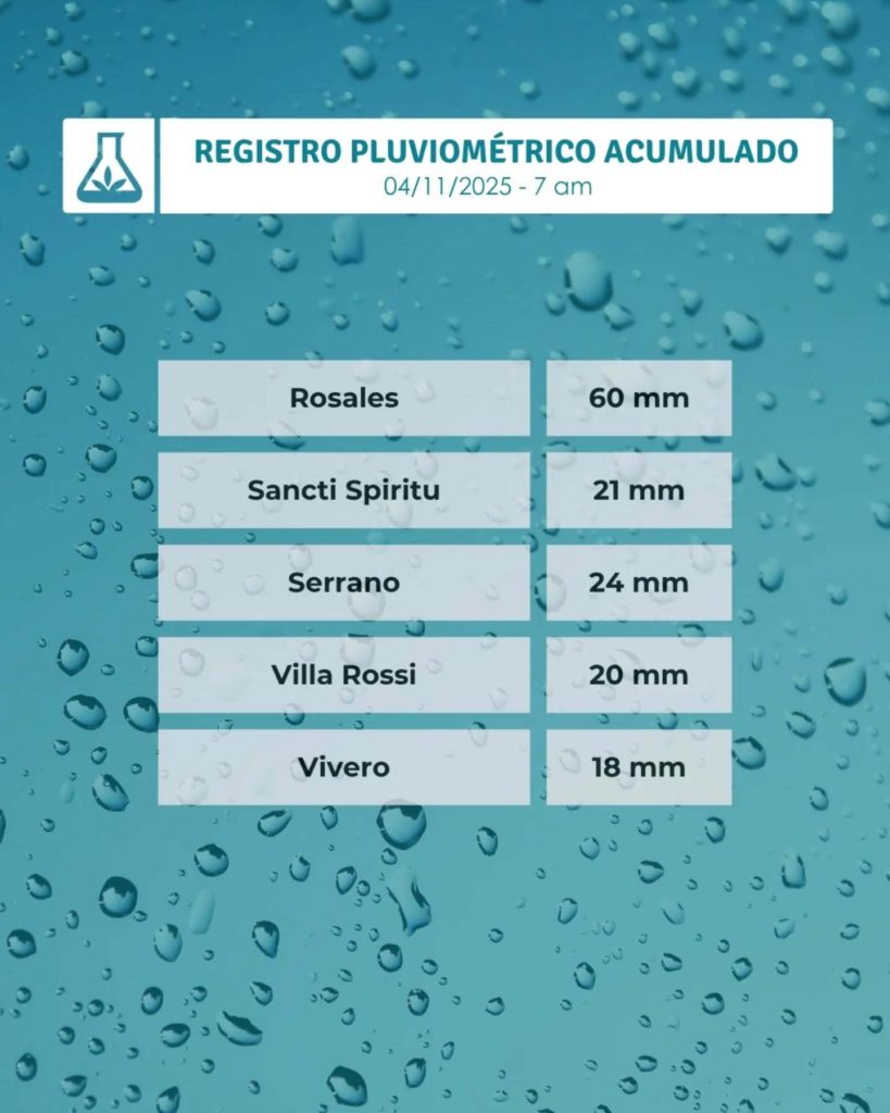 Registro acumulado de precipitaciones de hoy 04/11 hasta las 7 am.