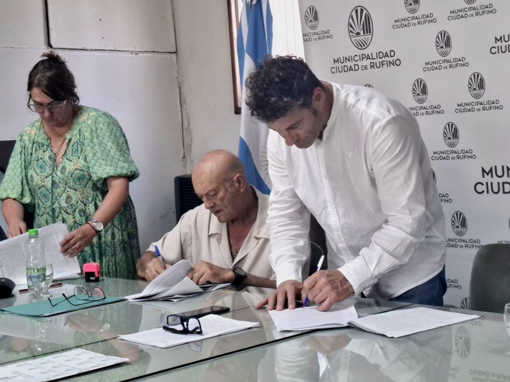 Ayer al mediodía, en el Salón Verde de la Municipalidad de Rufino, el Intendente Natalio Lattanzi y autoridades de la Cooperativa de Energía Eléctrica Ltda. de Rufino firmaron el contrato de concesión por el servicio.