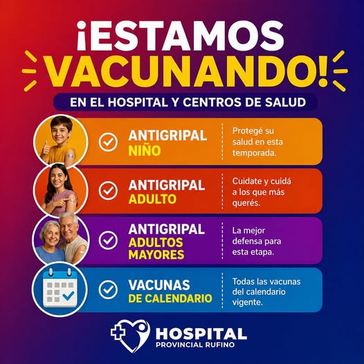 Desde el SAMCo Rufino recuerdan a la comunidad la importancia de acercarse al hospital o al centro de salud más cercano para completar el calendario de vacunación y aplicarse la vacuna antigripal.