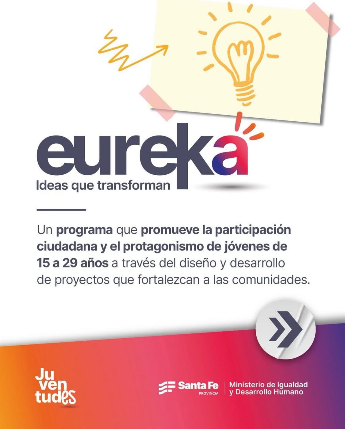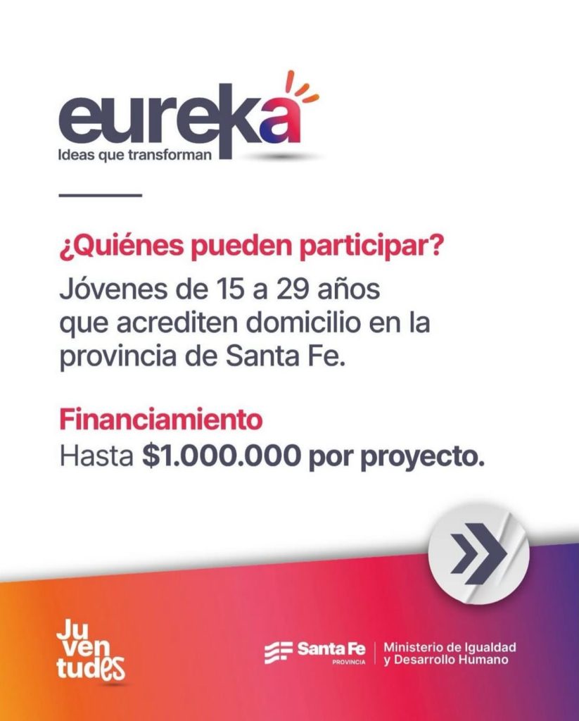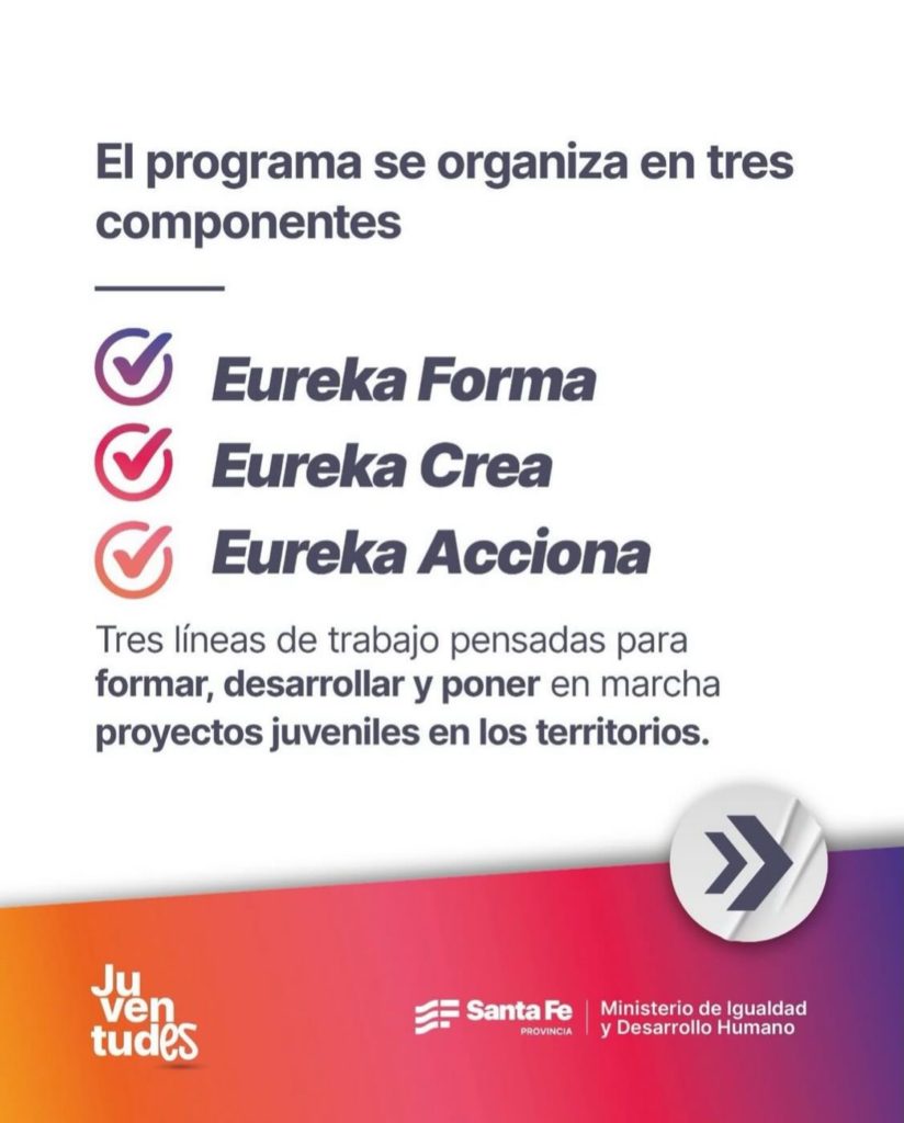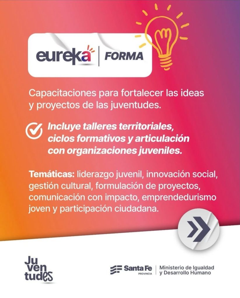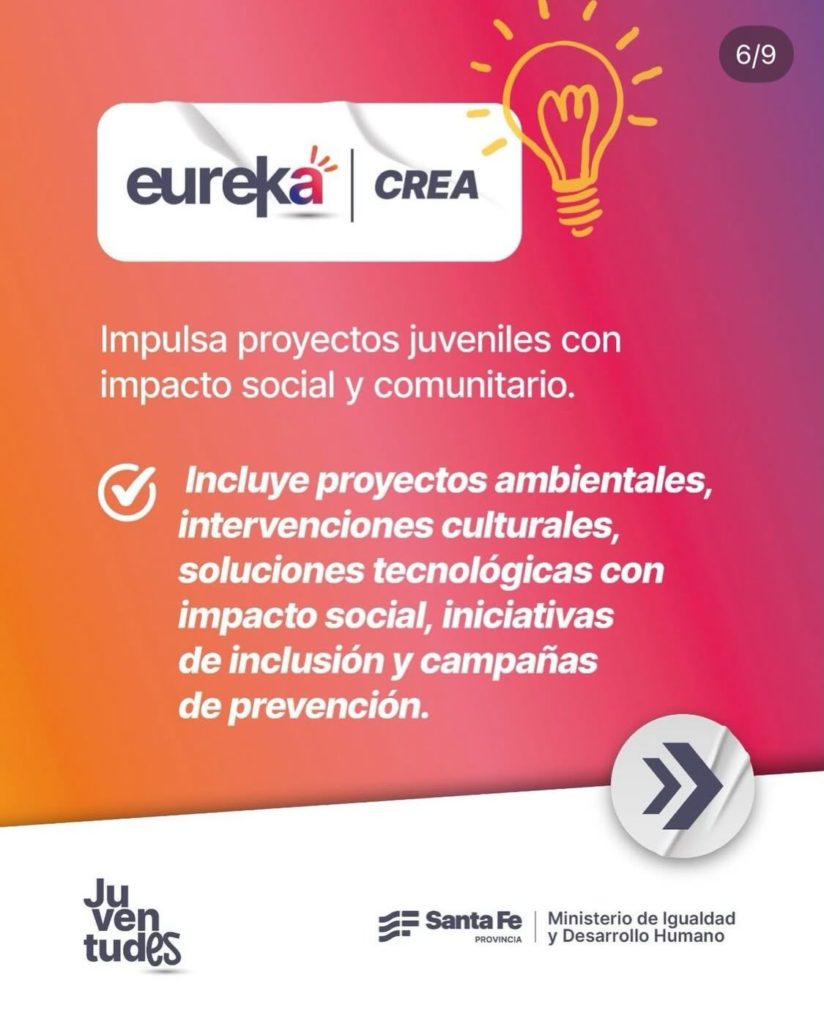 Desde Creo en Rufino informan que Eureka es un programa pensado para que las juventudes puedan proponer, crear y llevar adelante iniciativas que transformen realidades y construyan mejores oportunidades para todos.