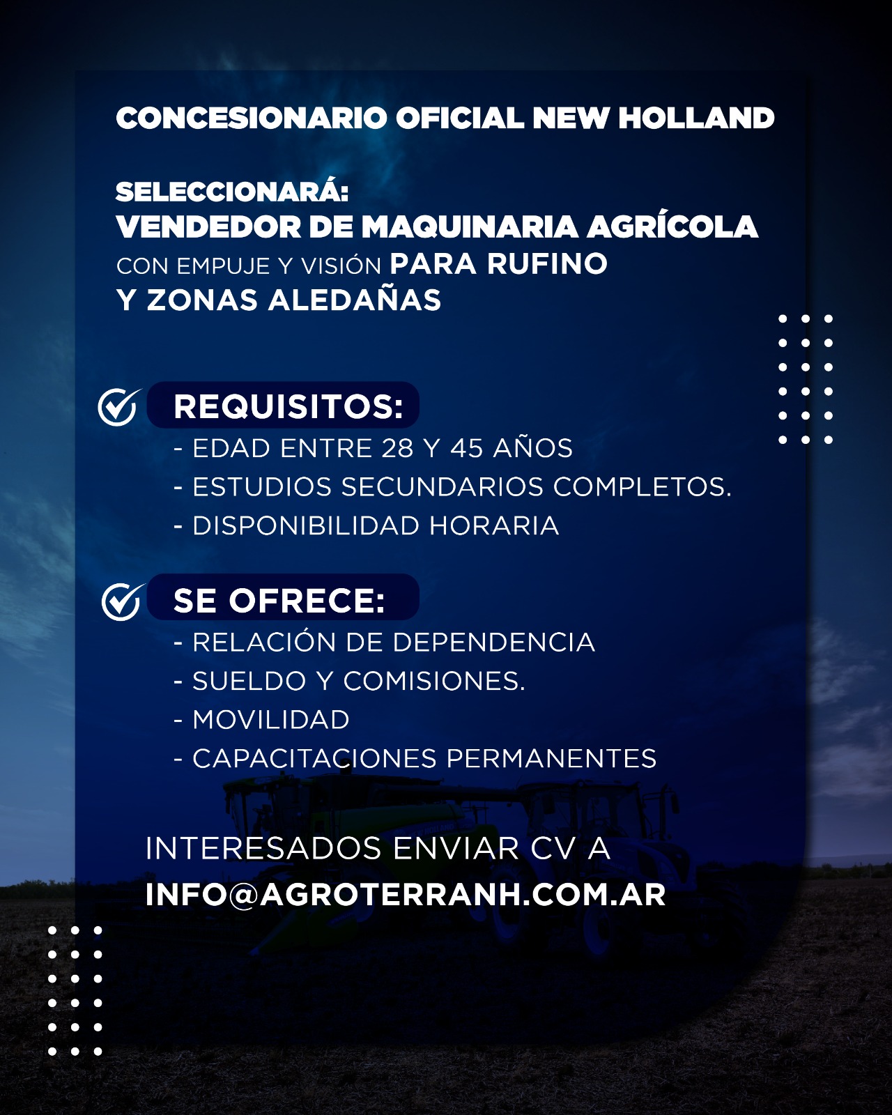 Concesionario oficial New Holland seleccionará para Rufino y zona.