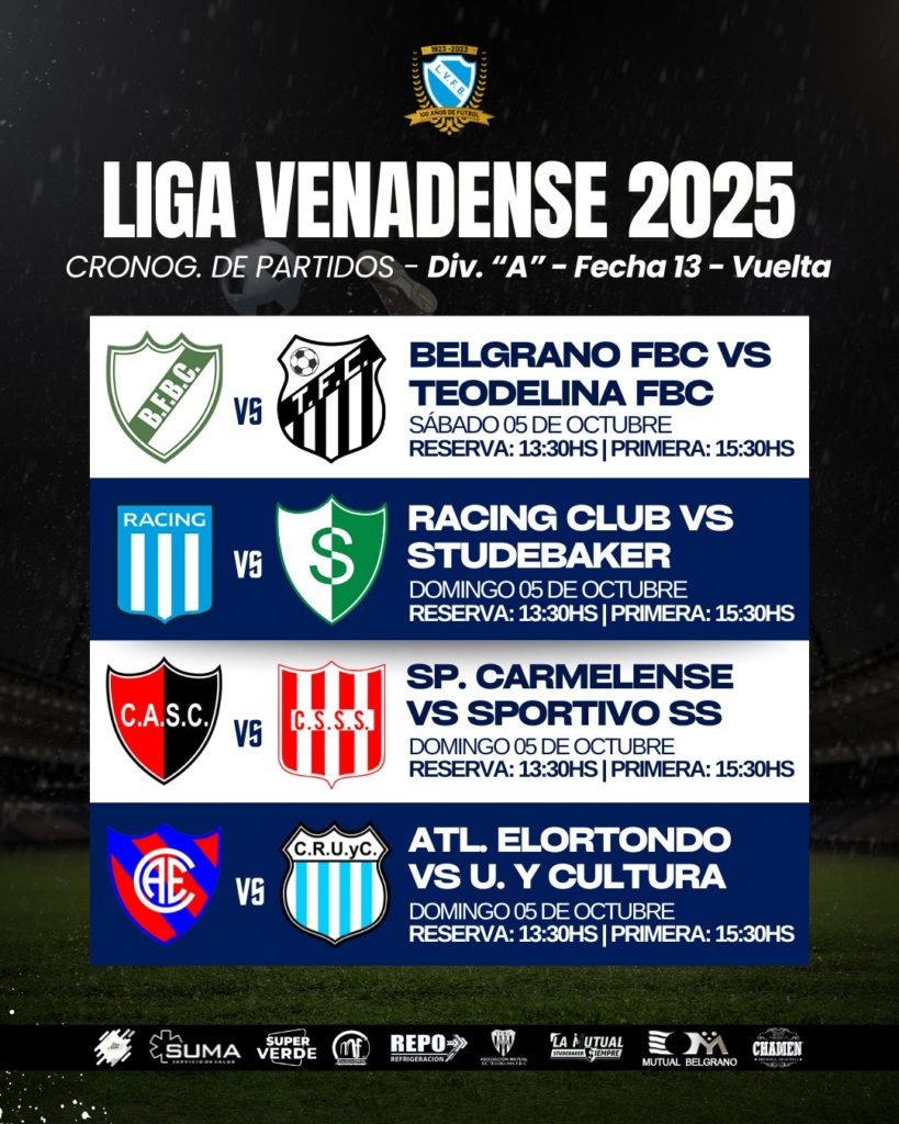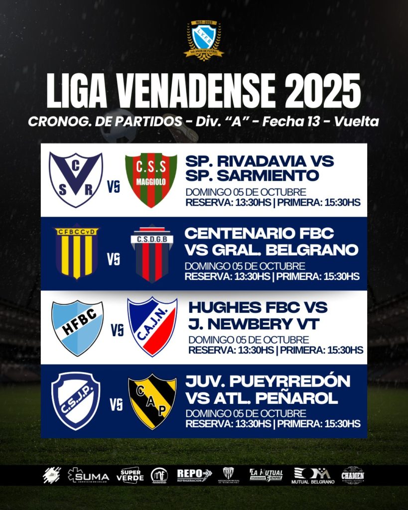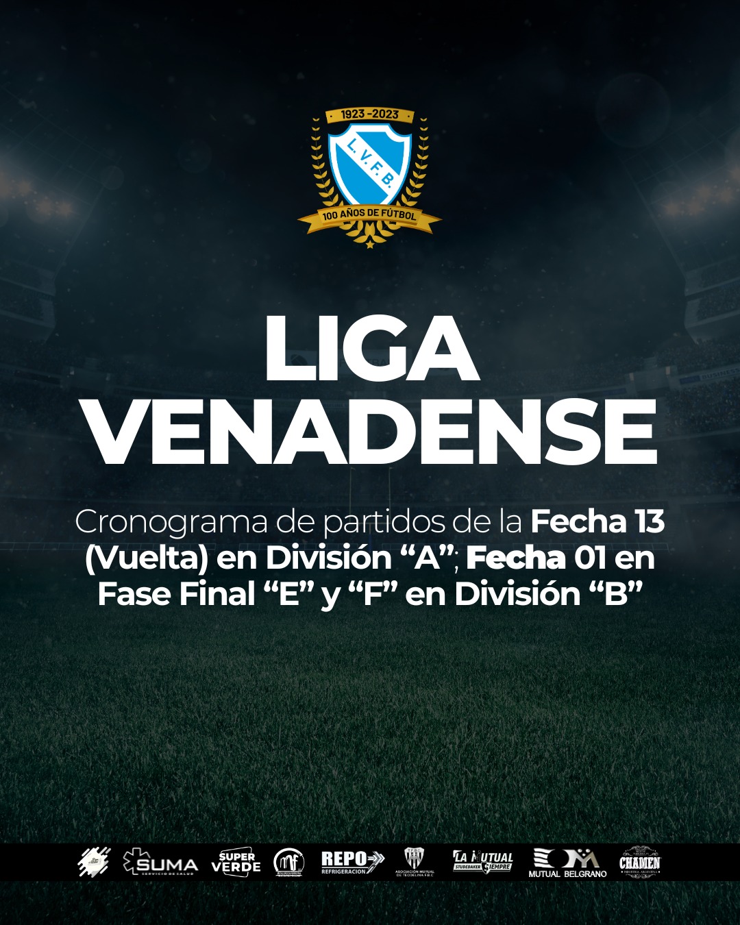 Cronograma de partidos correspondiente a la Fecha 13 (Vuelta) en División “A” y Fecha 01 de la Fase Final «E» y «F» en División «B».