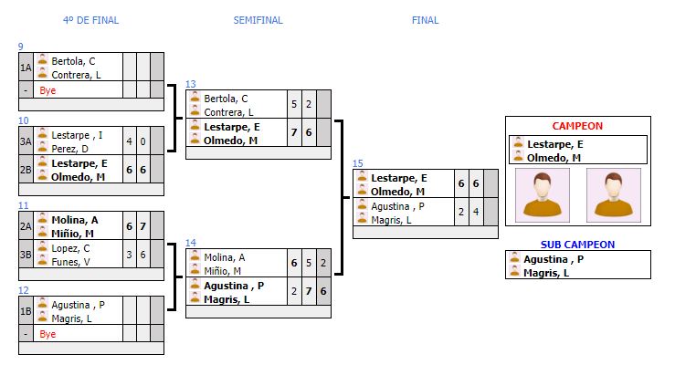 En la Categoría “A-B”, los campeones fueron Esteban González y Javier Gabilanes, mientras que el segundo puesto fue para Germán Peña y Fernando Mansilla.