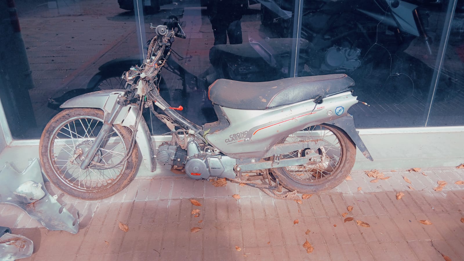 Ayr al mediodía, personal del Comando Radioeléctrico halló una motocicleta marca Keller 110 c.c. en estado de abandono en las inmediaciones de calle Sarmiento y Calle 120, junto a las vías del tren.