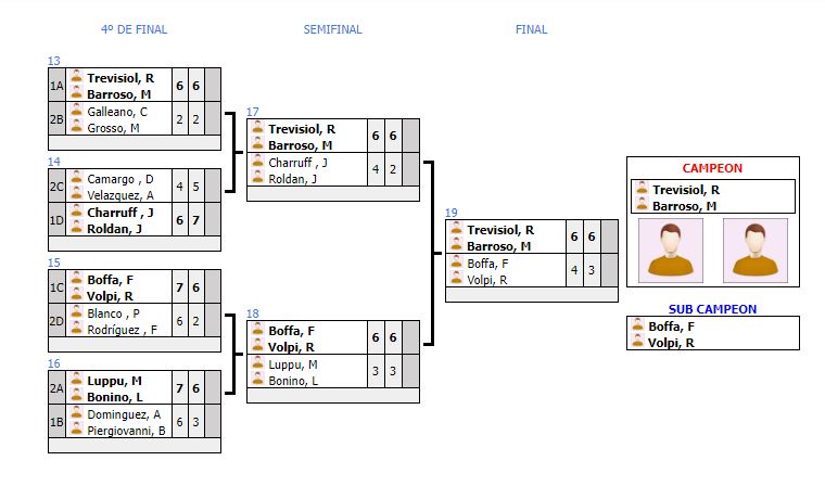 Renzo Trevisiol y Maximiliano Barroso se coronaron campeones tras superar a Franco Boffa y Rodrigo Volpi en la final por 6-4 y 6-3, en un intenso y disputado partido.