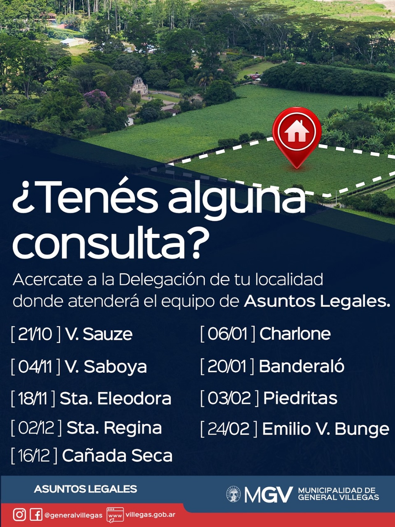 La Dirección de Asuntos Jurídicos de la Municipalidad de General Villegas iniciará una serie de visitas a las localidades del Partido