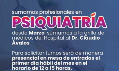 El Hospital continúa fortaleciendo su equipo de salud con la incorporación del Dr. Claudio Ávalos al área de Psiquiatría, a...