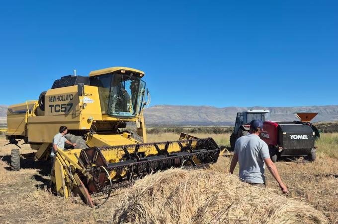 A 40 km del glaciar Perito Moreno comenzó la cosecha del trigo más austral del mundo con un rinde muy prometedor