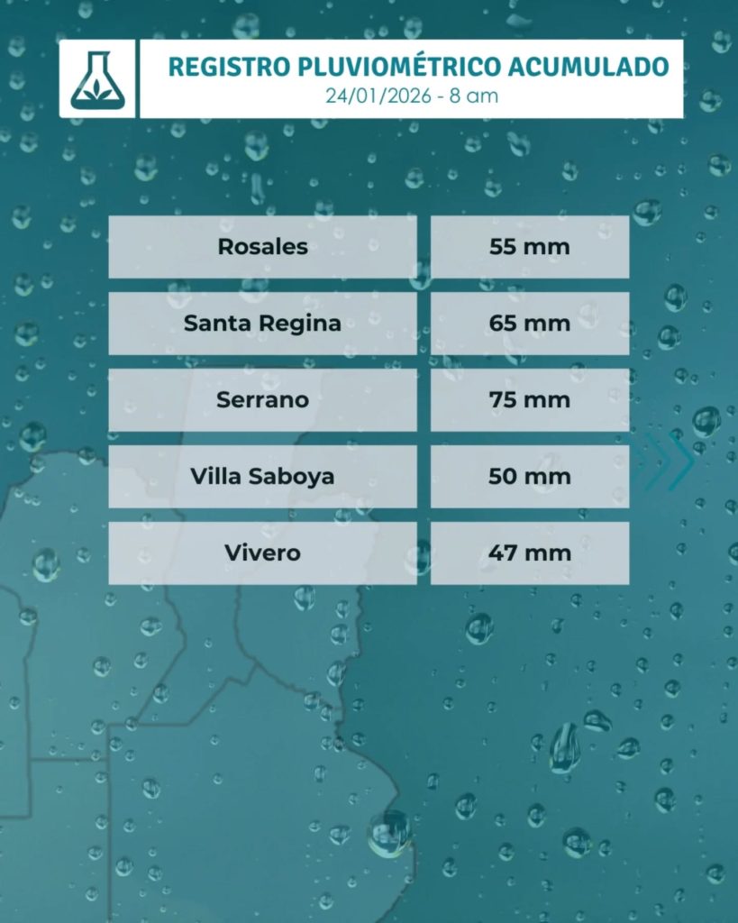 Las precipitaciones fueron generales en toda la zona, beneficiando al sector agropecuario y recargando perfiles de suelo, aunque en algunos sectores se reportaron anegamientos temporarios en caminos rurales.
