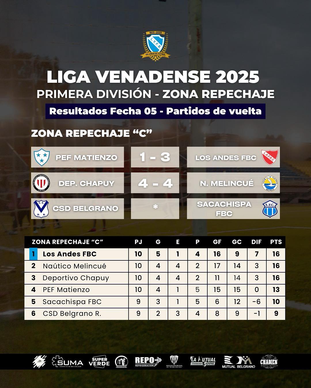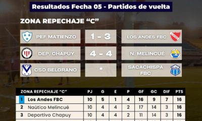 Resultados y tabla de posiciones de la Fecha 05 (Vuelta) en Primera División “B” – Zona Repechaje