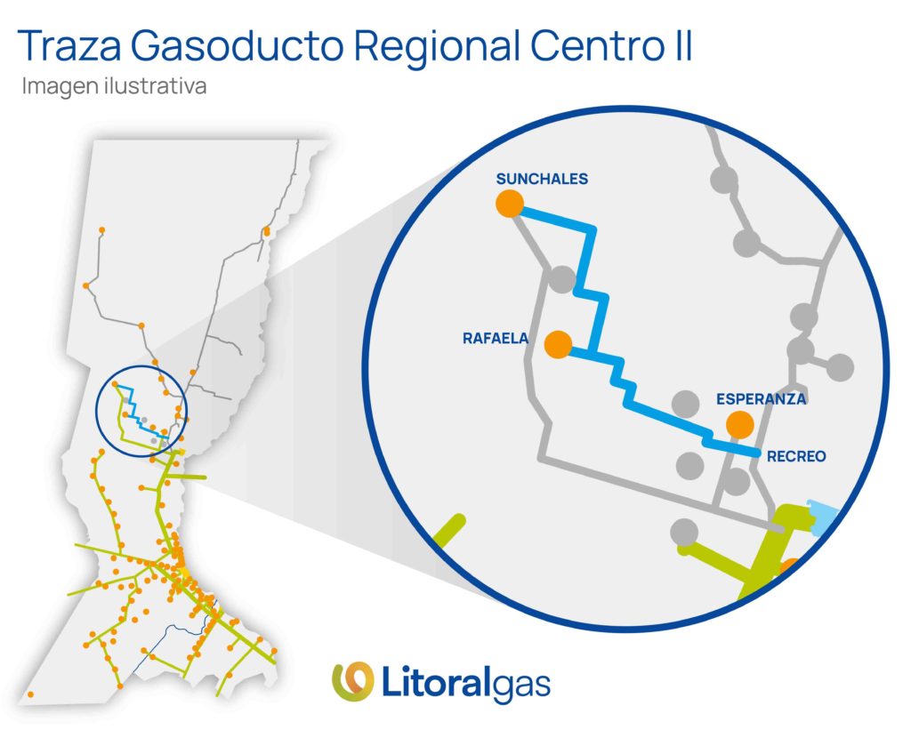 Este gasoducto, de más de 140 km, tiene por objetivo ampliar el sistema de distribución de gas natural de Litoralgas en la zona de Rafaela y Sunchales.