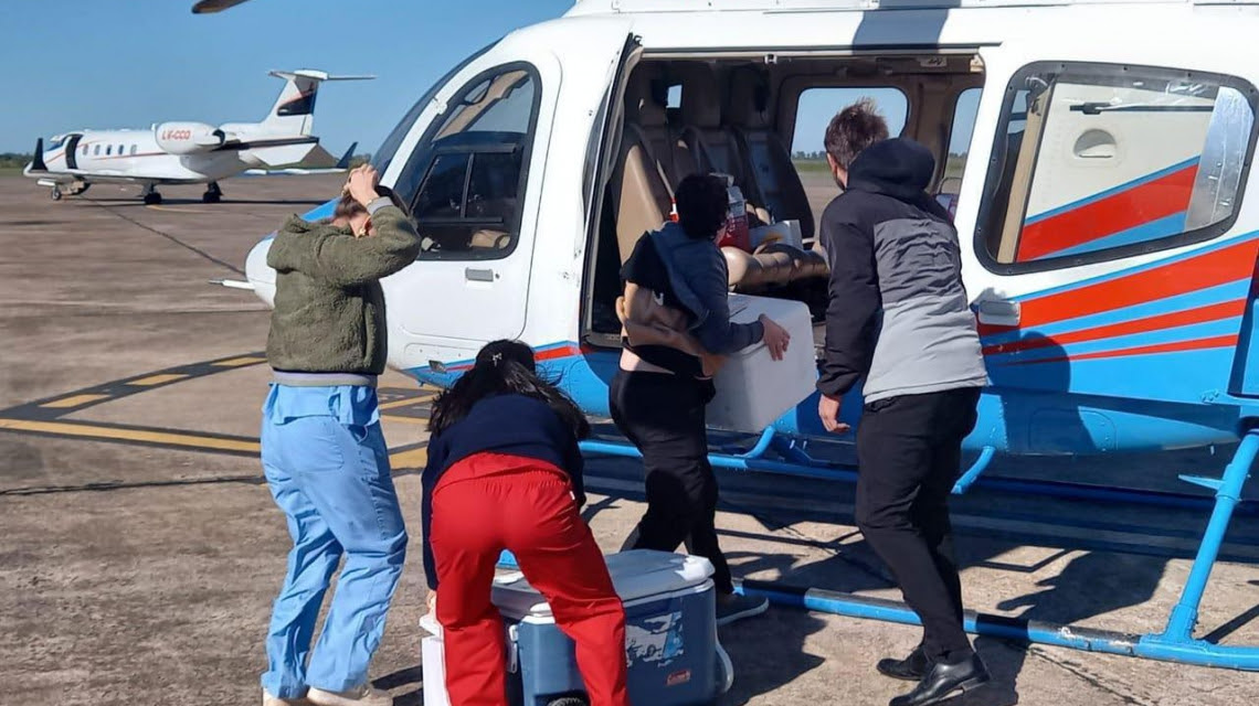 Este domingo se realizó desde Rosario el primer traslado de un órgano y tejidos, en un helicóptero de la dirección de Movilidad y Aeronáutica de la Provincia, hasta el Aeropuerto Internacional de Sauce Viejo. Desde allí, continuaron en un vuelo sanitario hacia Buenos Aires para trasplantarse en pacientes que estaban en lista de espera.