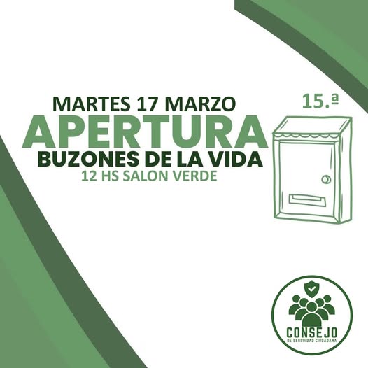El Consejo de Seguridad Ciudadana de Rufino anunció la Décima Quinta Apertura de los Buzones de la Vida, que se realizará el próximo martes 17 de marzo a las 12 horas en el Salón Verde de la Municipalidad de Rufino.