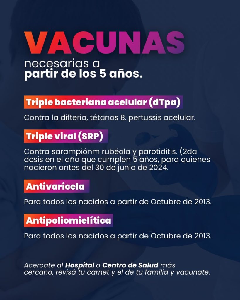 En este sentido, desde el hospital recomiendan a las familias revisar el carnet de vacunación y acercarse al centro de salud para completar las dosis correspondientes, en caso de que falte alguna aplicación.