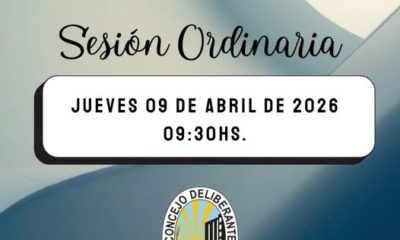 Mañana Jueves 09 de abril se realizará la Sesión Ordinaria del Concejo Deliberante de Rufino.