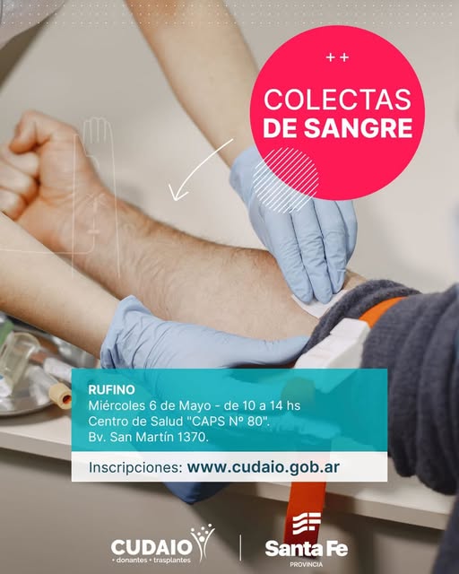 Miércoles 6 de mayo, de 10 a 14 hs. en el Centro de Salud CAPS N° 80 ubicado en Bv. San Martín 1370.