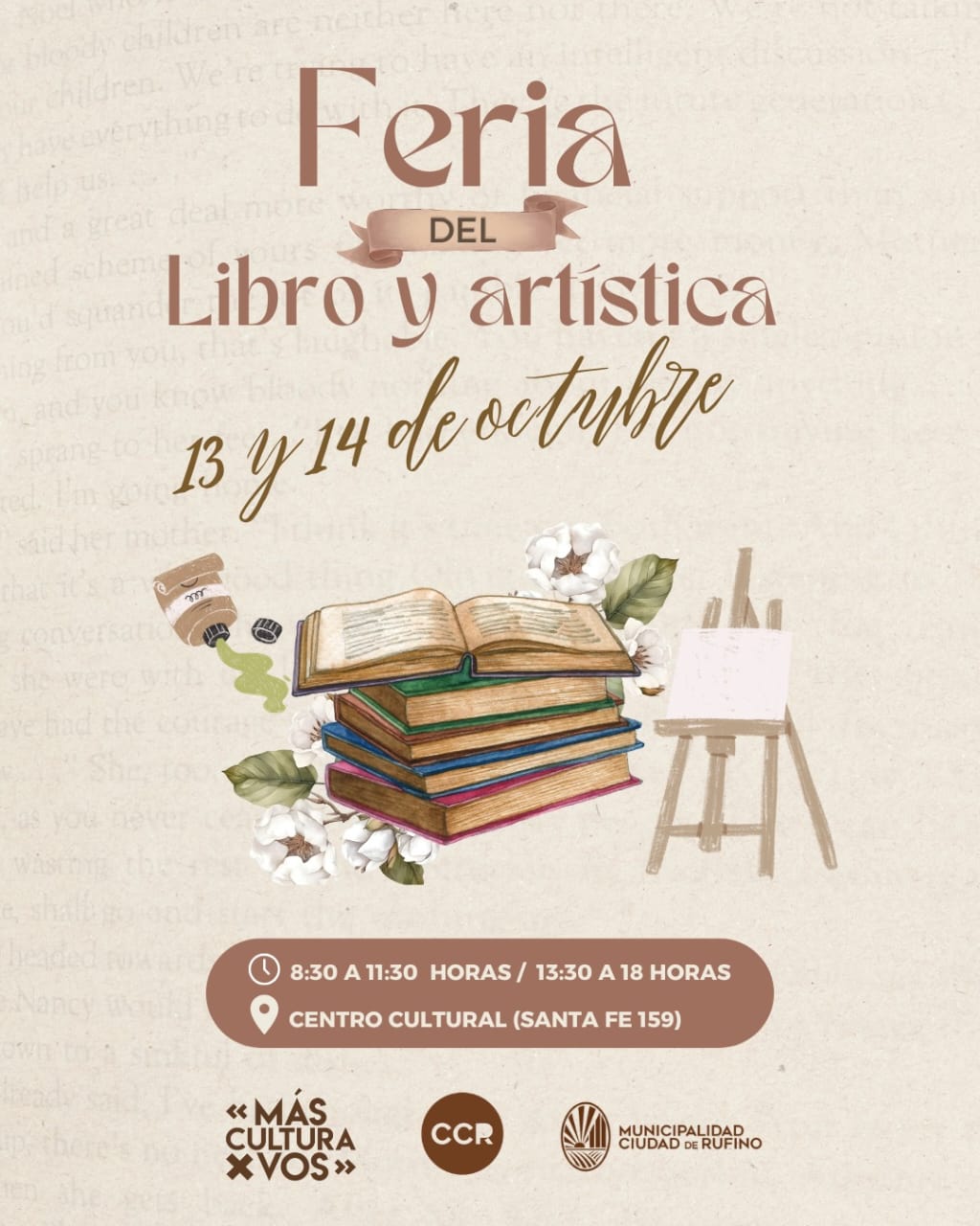La Municipalidad de Rufino invita a toda la comunidad a participar de una nueva edición de la Feria del Libro y Artística 2025, un evento que promueve la lectura, la creatividad y la producción cultural local.