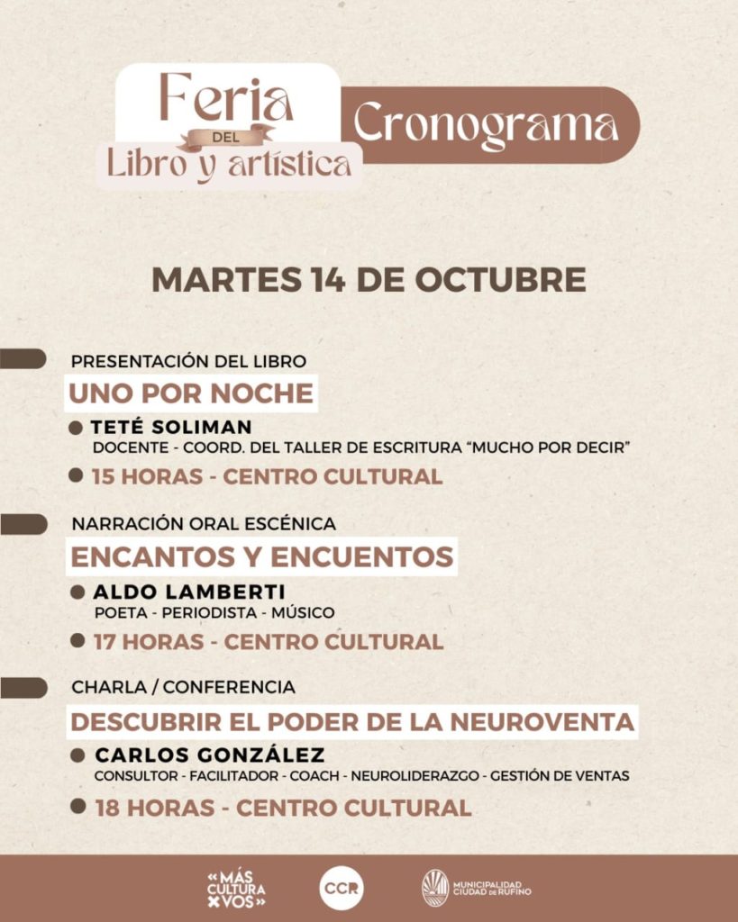 Llega la Feria del Libro y Artística 2025 en Rufino