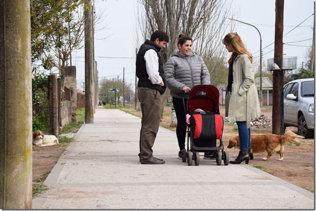 En recorrida de obra, el Intendente Municipal Natalio Lattanzi y la Secretaria de Obras y Servicios Públicos Andrea Caichiolo se encontraron con una vecina que paseaba con su pequeña beba en cochecito y sobre esas veredas, antes inexistentes.