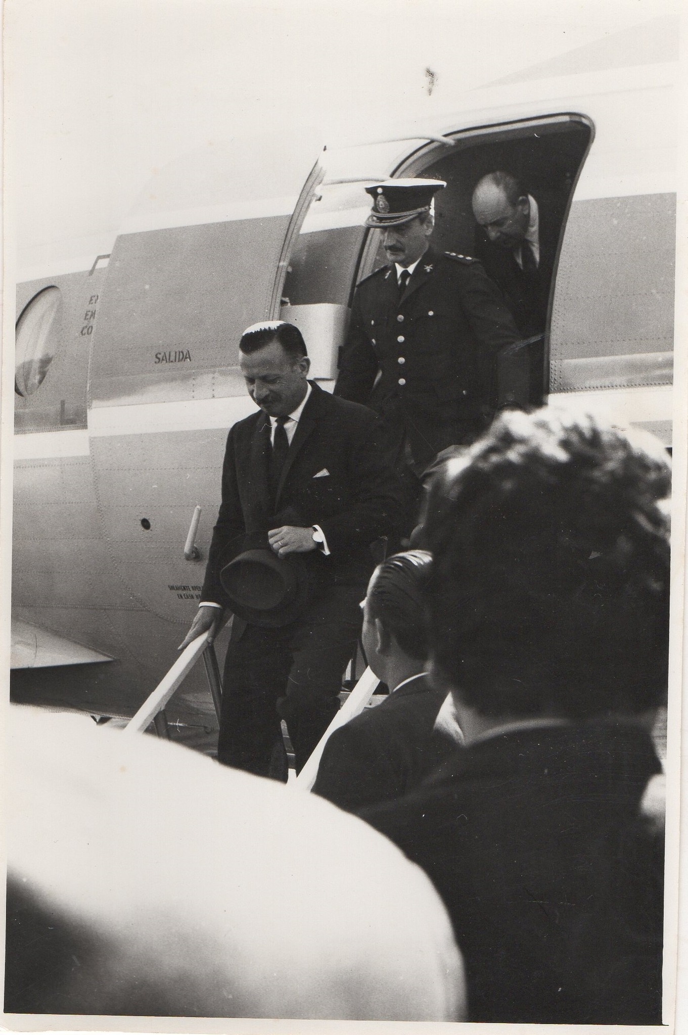 El presidente de facto Juan Carlos Ongania llega al Aeródromo de Rufino con su comitiva para inagurar el tramo de Junín-Mendoza de la ruta Nacional N°7.