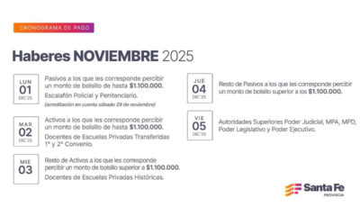 Cronograma de pago de haberes de noviembre a trabajadores provinciales