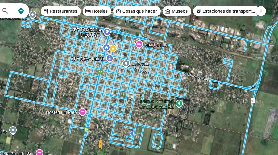 Sin embargo, en la actualidad, la plataforma de mapas de Google ya permite visualizar todas las calles de Rufino, ofreciendo una experiencia mucho más completa para vecinos y visitantes.