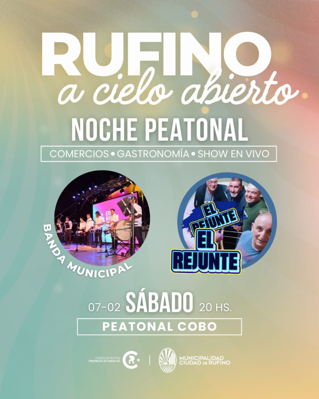 Este sábado 7 de febrero, la ciudad volverá a vivir una nueva jornada de “Rufino a Cielo Abierto”, una propuesta impulsada por la Municipalidad de Rufino que invita a vecinos y vecinas a disfrutar de una noche diferente en el centro de la ciudad.