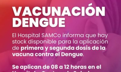 El Hospital informa que hay disponible primera y segunda dosis para vacunas contra el Dengue.