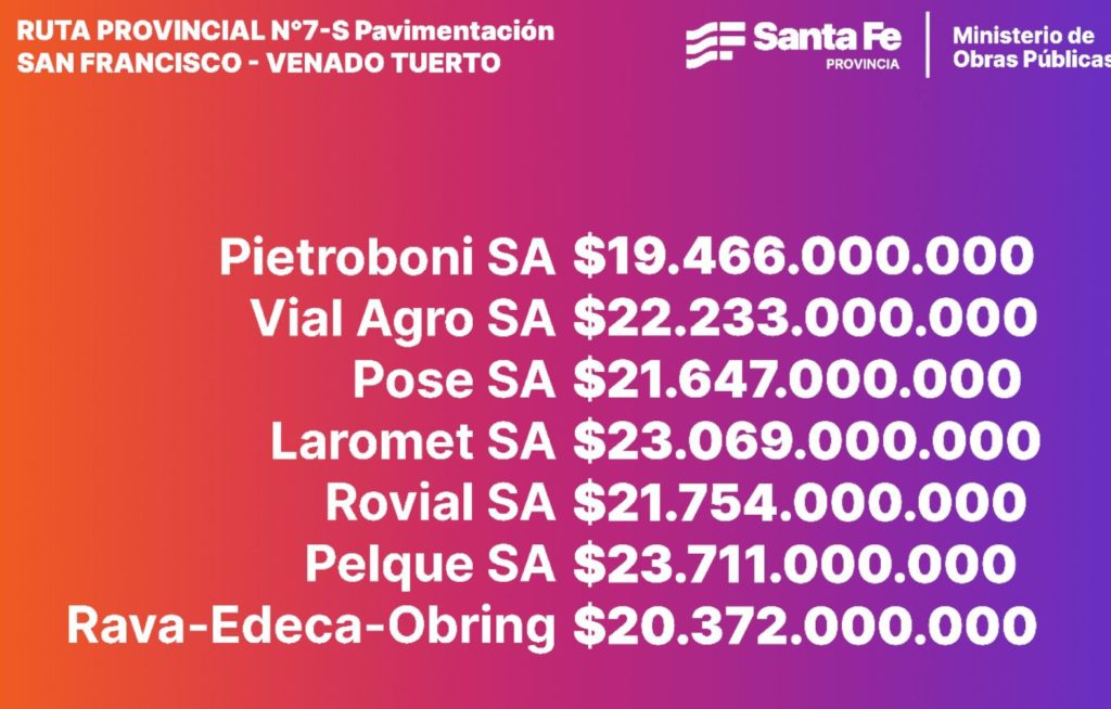 Con un total de 7 ofertas, hoy fue día histórico para este pueblo del sur santafesino. Las empresas constructoras se postularon para ejecutar la nueva ruta asfaltada que conectará San Francisco con la ciudad de Venado Tuerto.