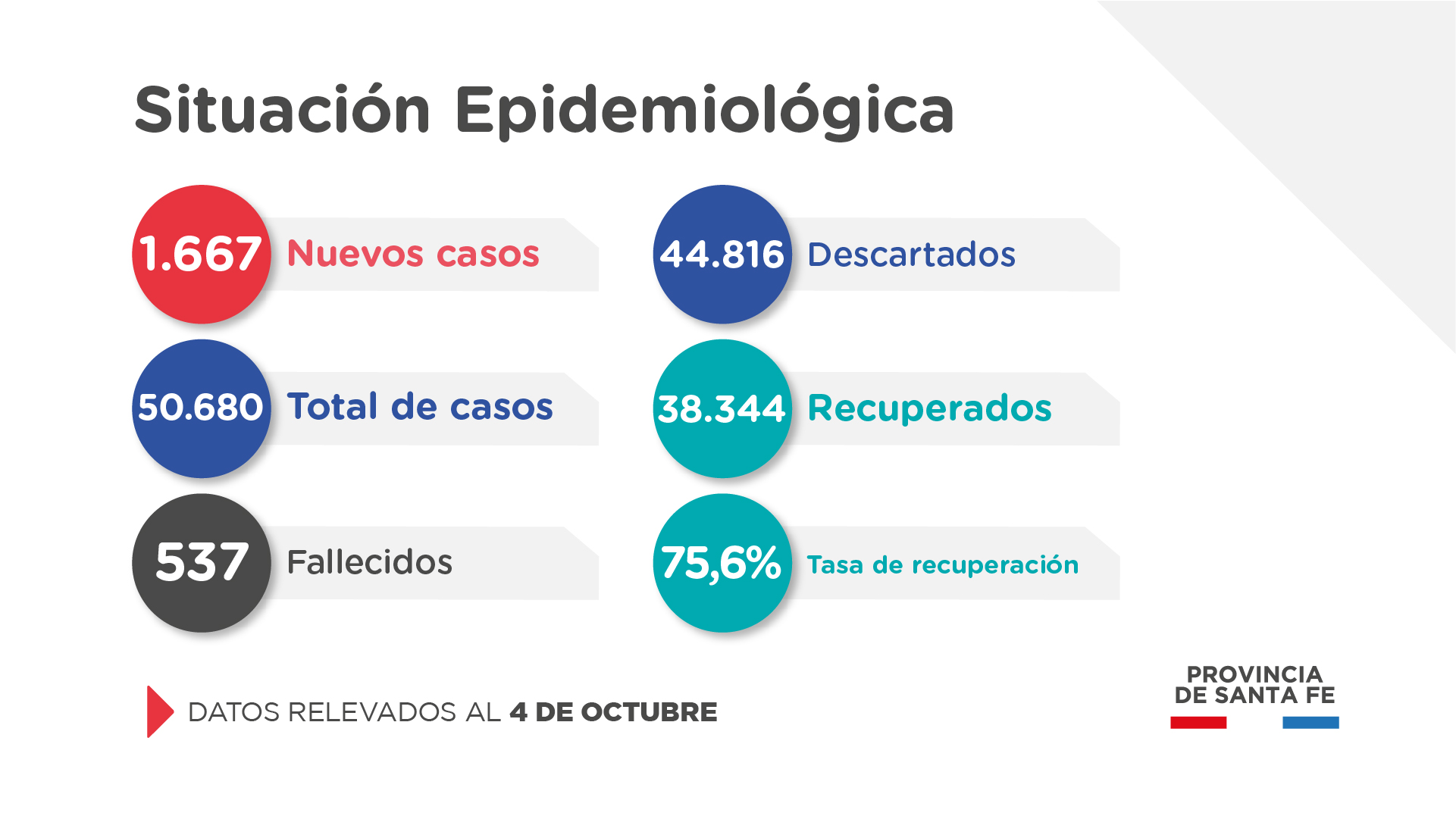 El Ministerio de Salud de Santa Fe, a través de la Dirección Provincial de Epidemiología, informa a la población que en el día de la fecha se han confirmado 1.667* casos nuevos de COVID-19, en el territorio provincial.