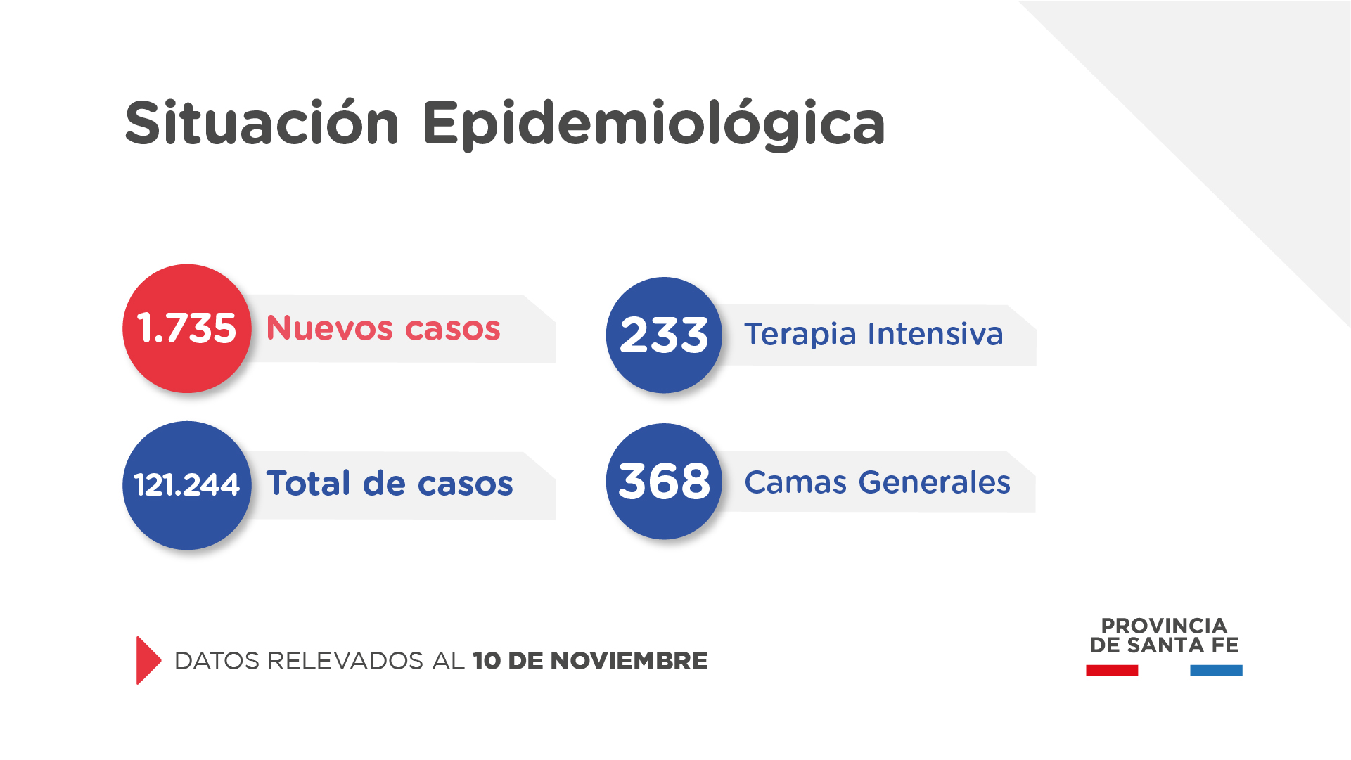 El Ministerio de Salud de Santa Fe, a través de la Dirección Provincial de Epidemiología, informa a la población que en el día de la fecha se han confirmado 1.735 casos nuevos de COVID-19, en el territorio provincial.