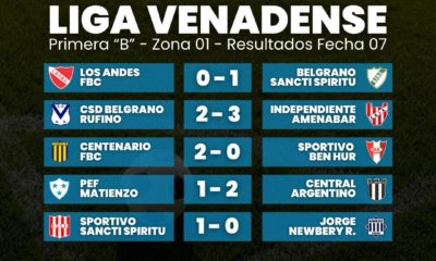 Se disputó la Fecha 07 de la Primera División “B” - Zona 01 de la Liga Venadense de Fútbol, y...