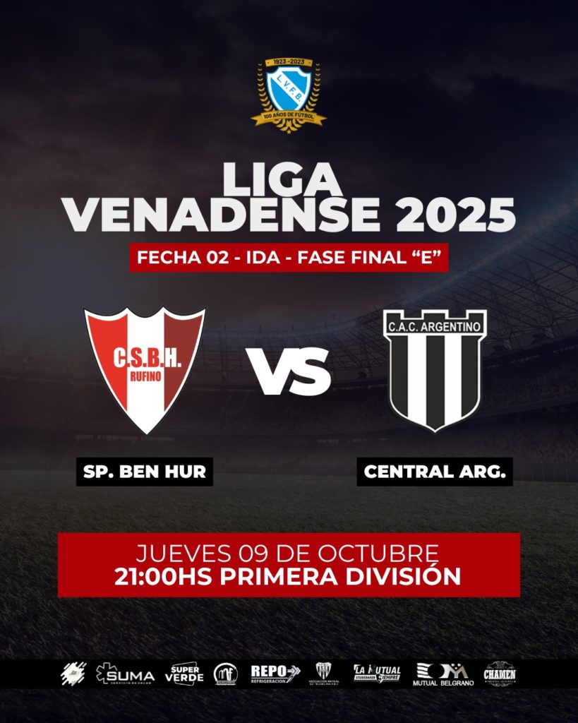 La Liga Venadense de Fútbol dio a conocer el cronograma de partidos correspondiente a la Fecha 2 de las Divisiones “B”, Fase Final “E” y “F”, que se disputará este jueves 9 de octubre.