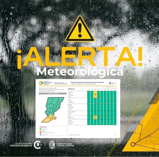 La Municipalidad de Rufino informa que rige un alerta amarilla por tormentas fuertes para el sur de la provincia. Las mismas comenzarían a presentarse hoy lunes.
