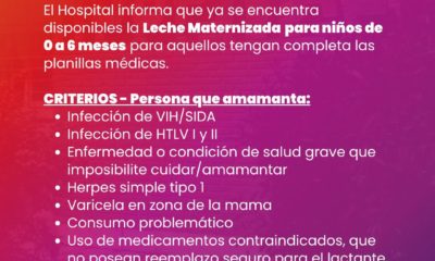 El Hospital informa que ya se encuentra disponible la leche maternizada para niños de 0 a 6 meses, destinada a...