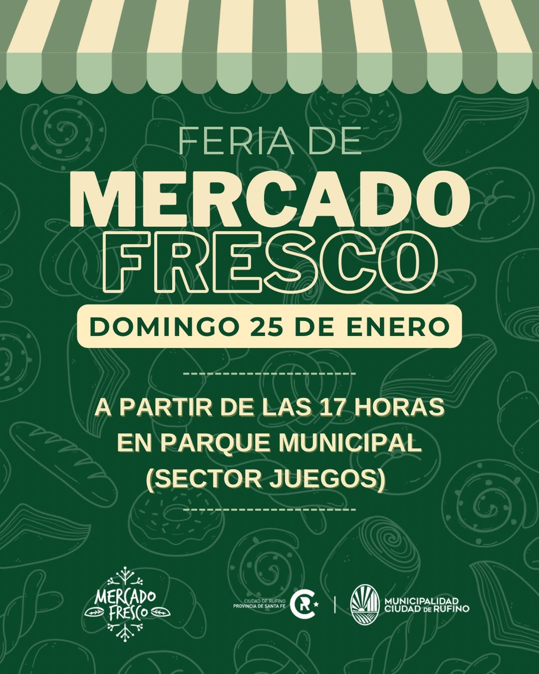 La Municipalidad de Rufino invita a la comunidad a disfrutar de una nueva edición de Mercado Fresco, que en esta oportunidad se traslada al Parque Municipal para compartir una tarde diferente.
